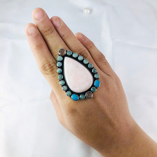 Natural Pink Opal, Amazonite, Peach Moonstone & Turquoise Ring By Harshita Jewellery