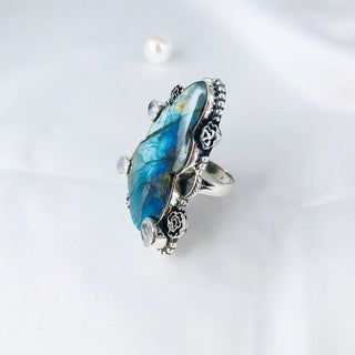 Natural Labradorite & Rainbow Moonstone Ring By Harshita Jewellery
