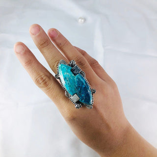 Natural Chrysocolla, Apatite & Moonstone Ring By Harshita Jewellery