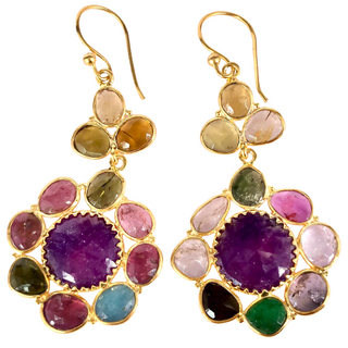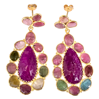 Multi Tourmaline & Ruby GOLD PLATED EARRING BEST FOR WOMEN'S AND GIRLS By Harshita Jewellery